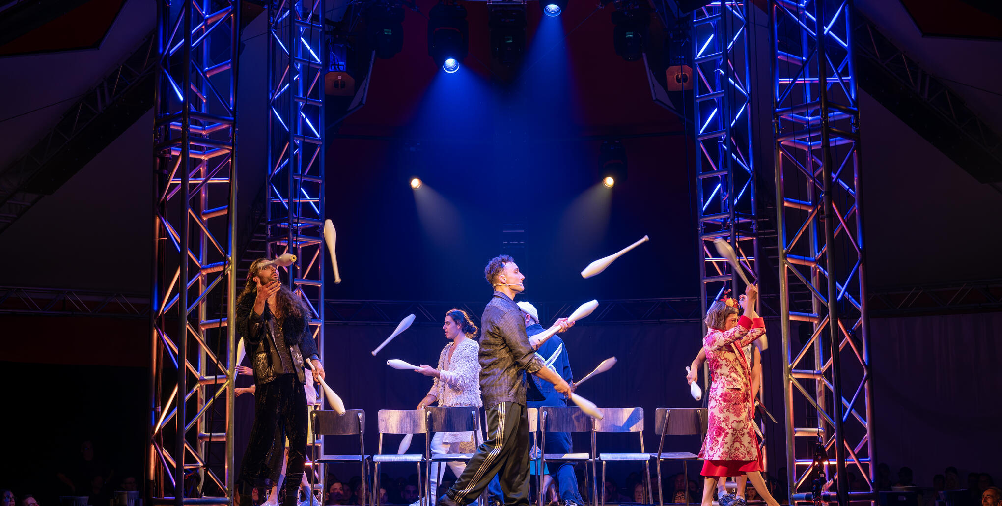Because, of course, that’s what you’ve been waiting for! From tiny tot to 100 years old, the little kid in all of us still has that zest and that sense of wonder about the circus, and the acts that make our heads spin! When the time comes and the canvas parts to welcome the crowd to the big top, the excitement goes up another notch. Inside, you see how close the seats are to the centre of the action, and to the performers who will soon perform on the main stage! You’re so close you can see the acrobats' efforts in the strain of their muscles, the quiver of their limbs; you can feel the concentration, hear the deep breaths, see perfectly measured movements, adjusted for the available stage space… This close contact quickly creates an impressive connection between artist and audience, together under the big top as acts flow from one to the next - scenes dreamed up under the artistic direction of Isabelle Chassé, co-founder of the 7 Fingers collective. At times, all of the circus performers share the stage, wielding giant fragments of mirror and drenching the walls of the big top in reflections, or juggling bowling pins during a wild game of musical chairs… At other times, they take the stage to give the audience a taste of just how talented they are, solo, or in pairs!