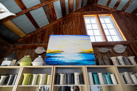 Durant des années, c’est cette rencontre avec les gens visitant l’atelier-boutique, alors connu comme « Les Ateliers DeBlois », qui était le moteur de sa création. Depuis, la maison de Saint-Irénée qu’il occupait avec son épouse, la céramiste Joan Deblois, les ateliers et la boutique poursuivent leur mission à travers les mains d’une relève à l’image du couple et du projet de Marc et Joan. L’apprenti devenu potier, Stéphane Bouchard, et sa compagne designer textile Nancy Giguère, emplissent à leur tour ce lieu d’amour et de création. Leurs médiums d’expression et les tableaux de Marc Deblois se répondent, en une heureuse synergie, dans les espaces de ce qu’il a contribué à construire, désormais nommé Les Ateliers Charlevoix. Un bonheur de voguer vers une retraite partielle pour le peintre, qui n’est pas prêt encore à renoncer à ses pinceaux, sachant que le projet bâti avec Joan survit et perdure.